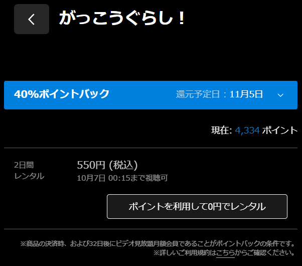 U-NEXTは月額2,189円(税込)のサービスですが無料トライアル(お試し)期間が31日設けられており、この期間に解約すれば料金が一切かかりません。さらに無料期間でも600ポイントもらえる(通常は毎月1,200ポイント貰えます)ため、500円+税相当のこの作品も実質無料で観ることができるのです!